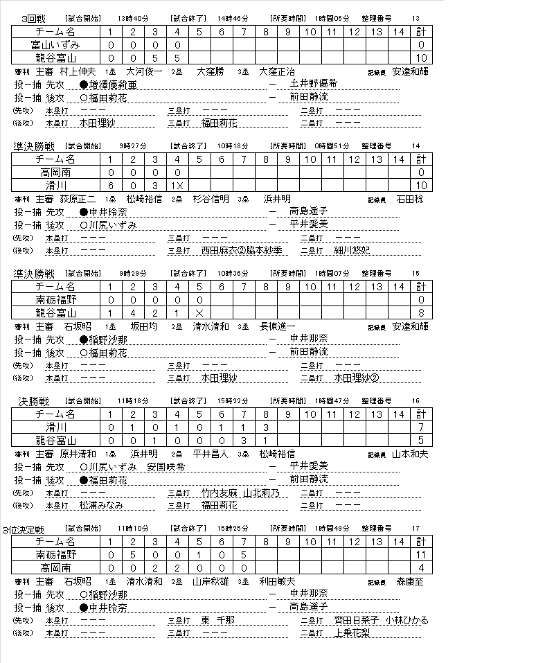 | 第三位 シード権獲得の南砺福野高校ナイン | 第三位の高岡南高校ナイン |