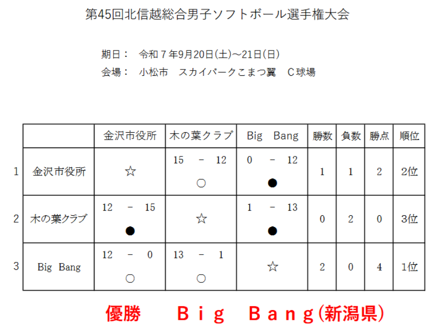 第38回大会 福井県あわら市で開催が9月8日・9日両日とも雨天のため中止となりました。