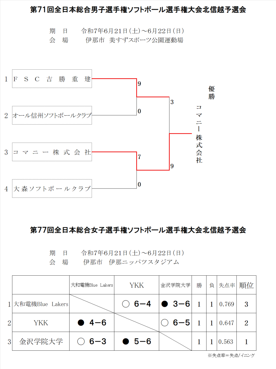 第66回全日本総合男子・第72回全日本総合女子ソフトボール選手権北信越予選会新型コロナウイルス感染拡大により中止となりました。