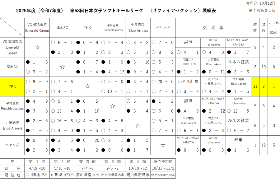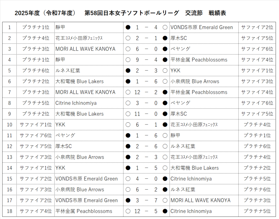 プラチナ 順位決定節 2022年11月06日(日)花王コスメ小田原 VS YKK | 日本女子ソフトボールリーグ (jsl-women.com)