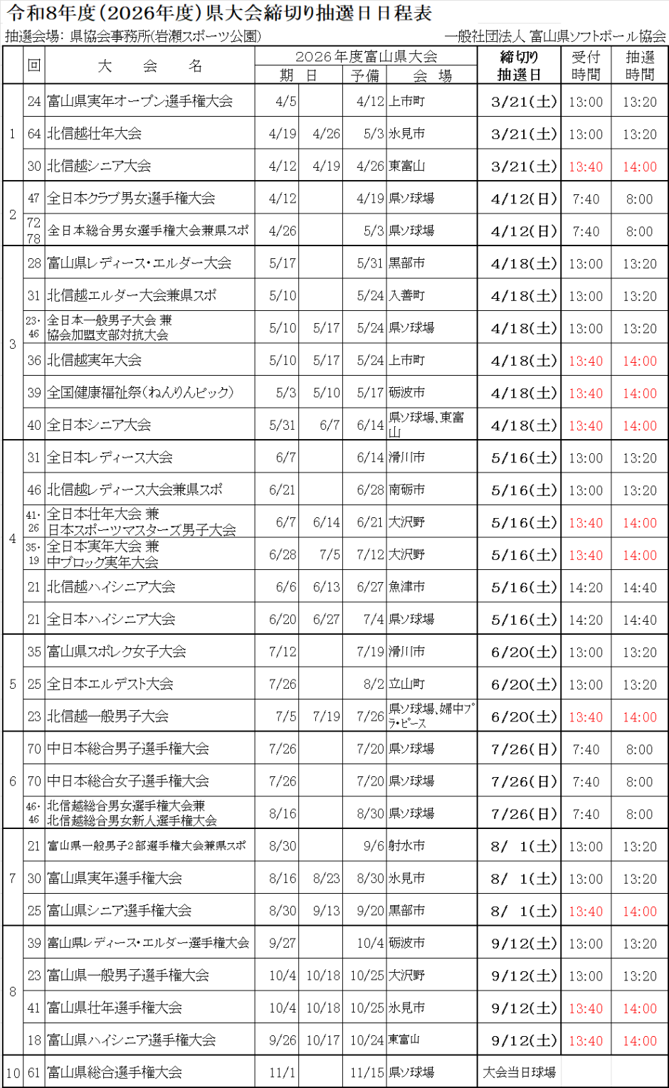 ※抽選日は下にスクロール。最終決定ではありません。3月上旬開催の評議員会で最終決定します。