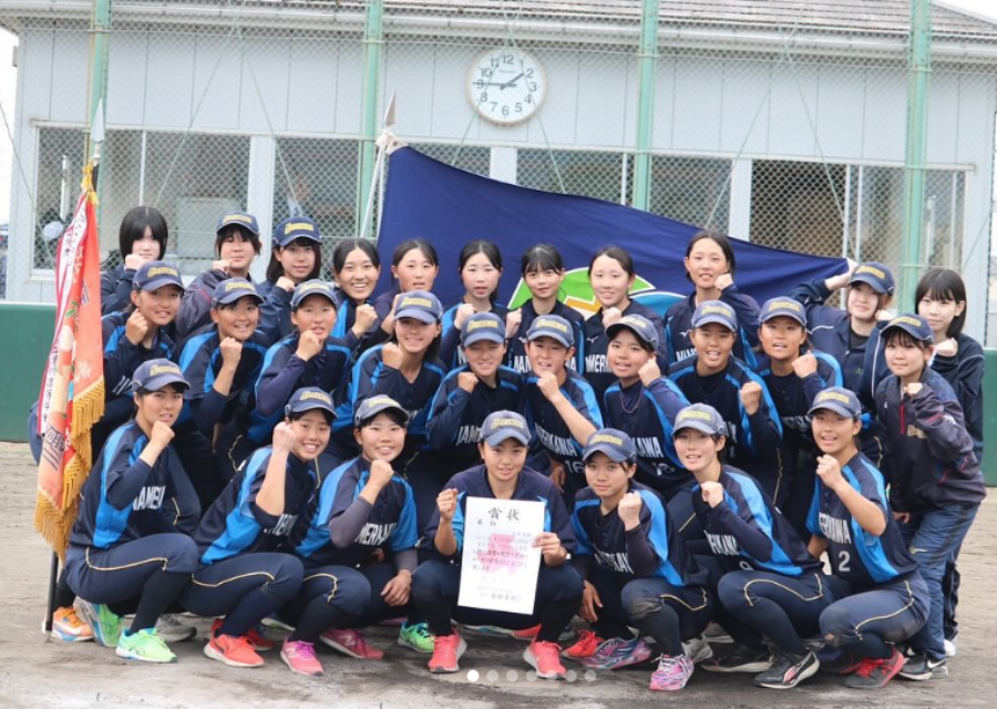 | 優勝旗、賞状を受け取る滑川高校選手 |