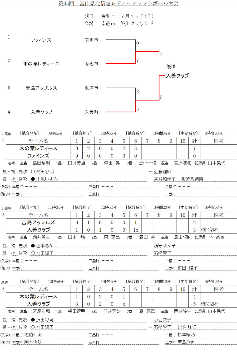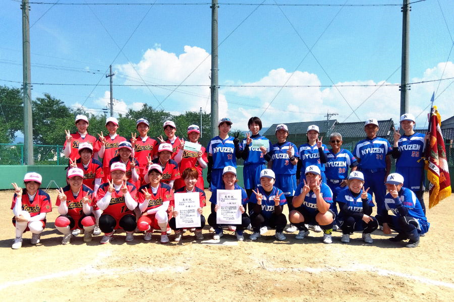 | 優勝の入善クラブナインと準優勝の木の葉レディースナイン |