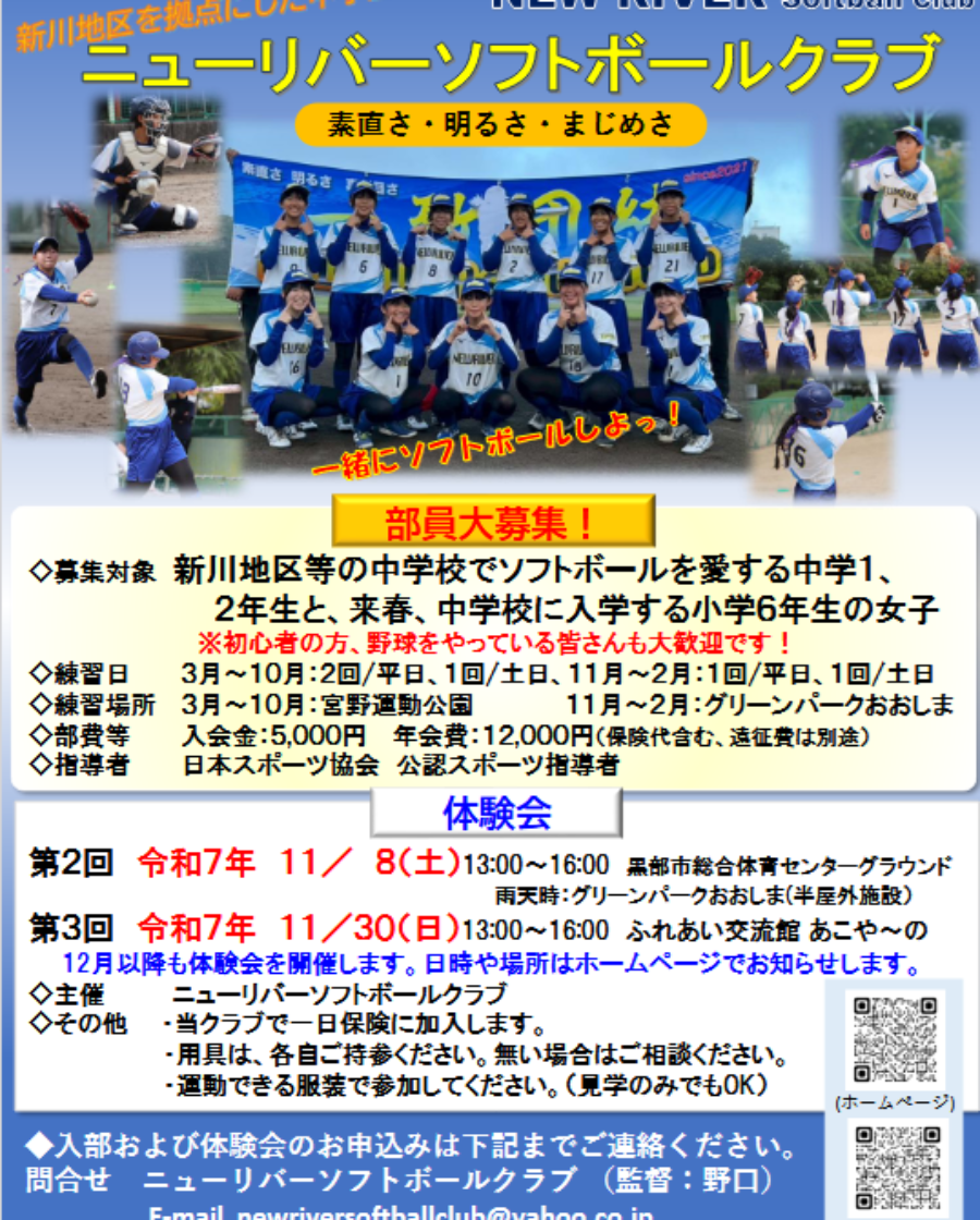 ニューリバーソフトボールクラブホームページ ★上記募集チラシPDF ★チームチラシPDF