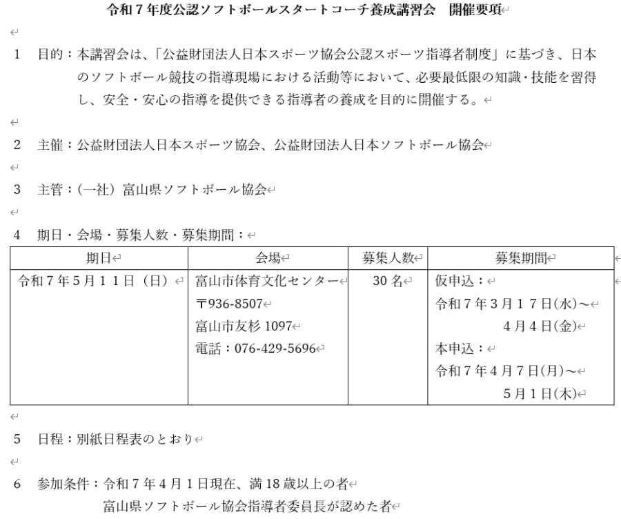 ★令和4年度公認ソフトボールスタートコーチ養成講習会 開催要項PDF