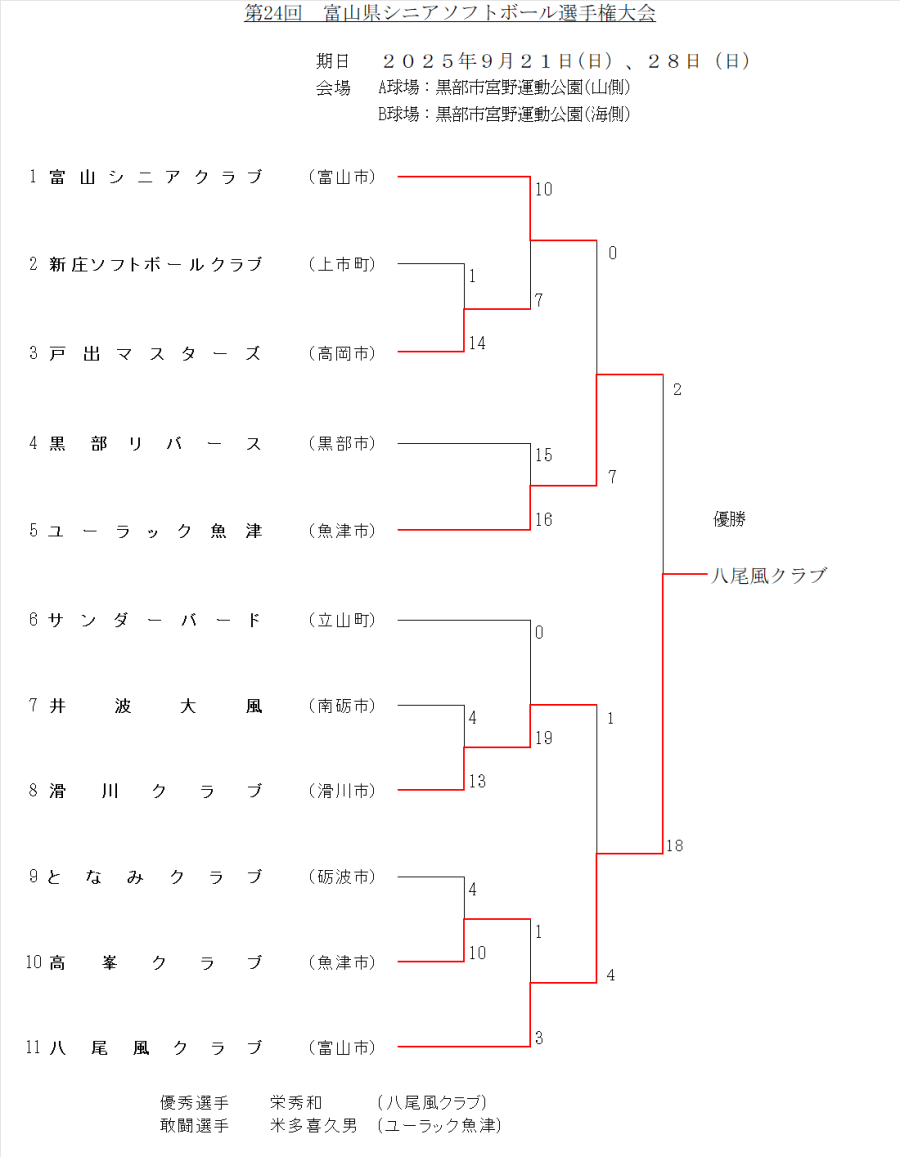 | 昨年に続き優勝の富山シニアクラブナイン |