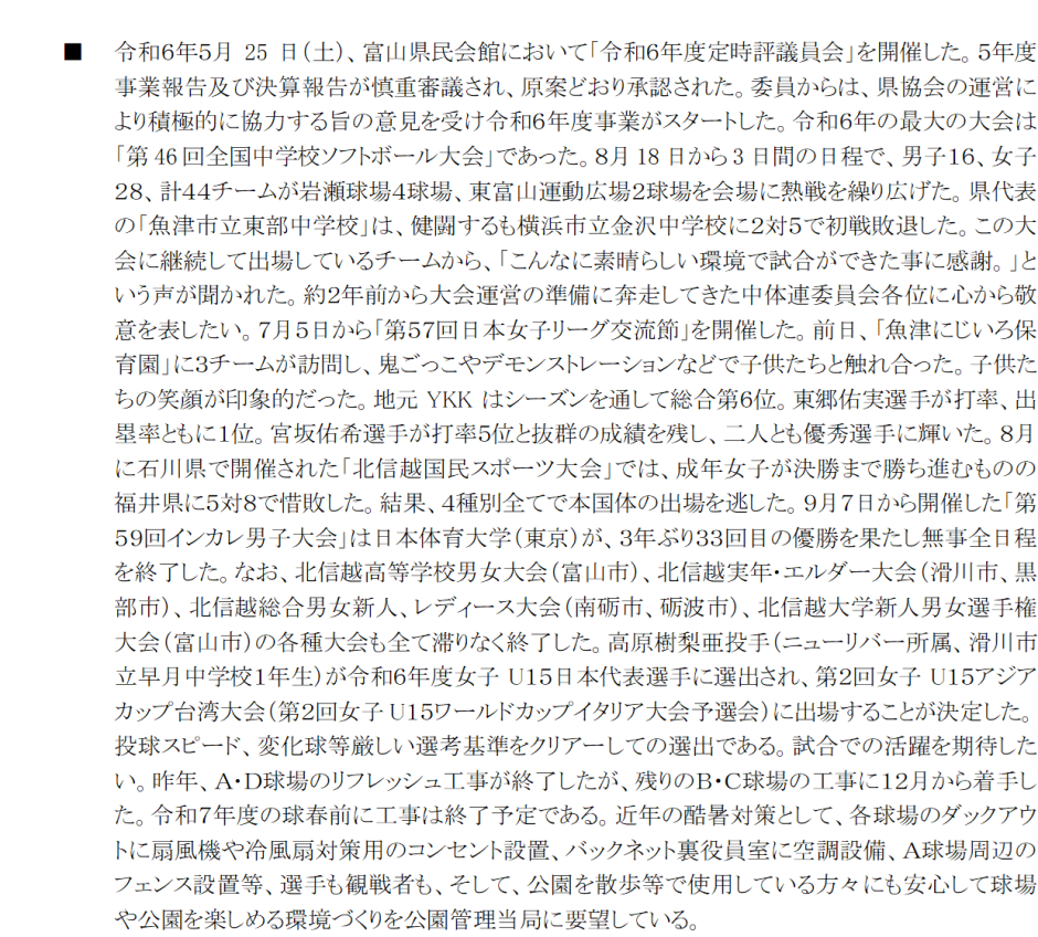 富山県ソフトボール協会の沿革