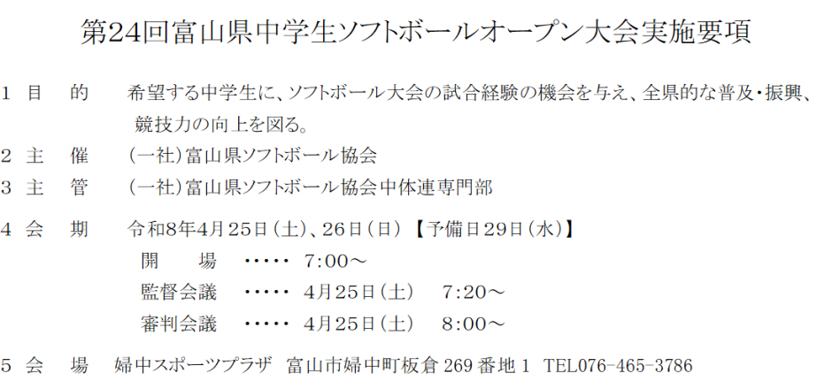 | 富山県中学生ソフトボールオープン大会 |