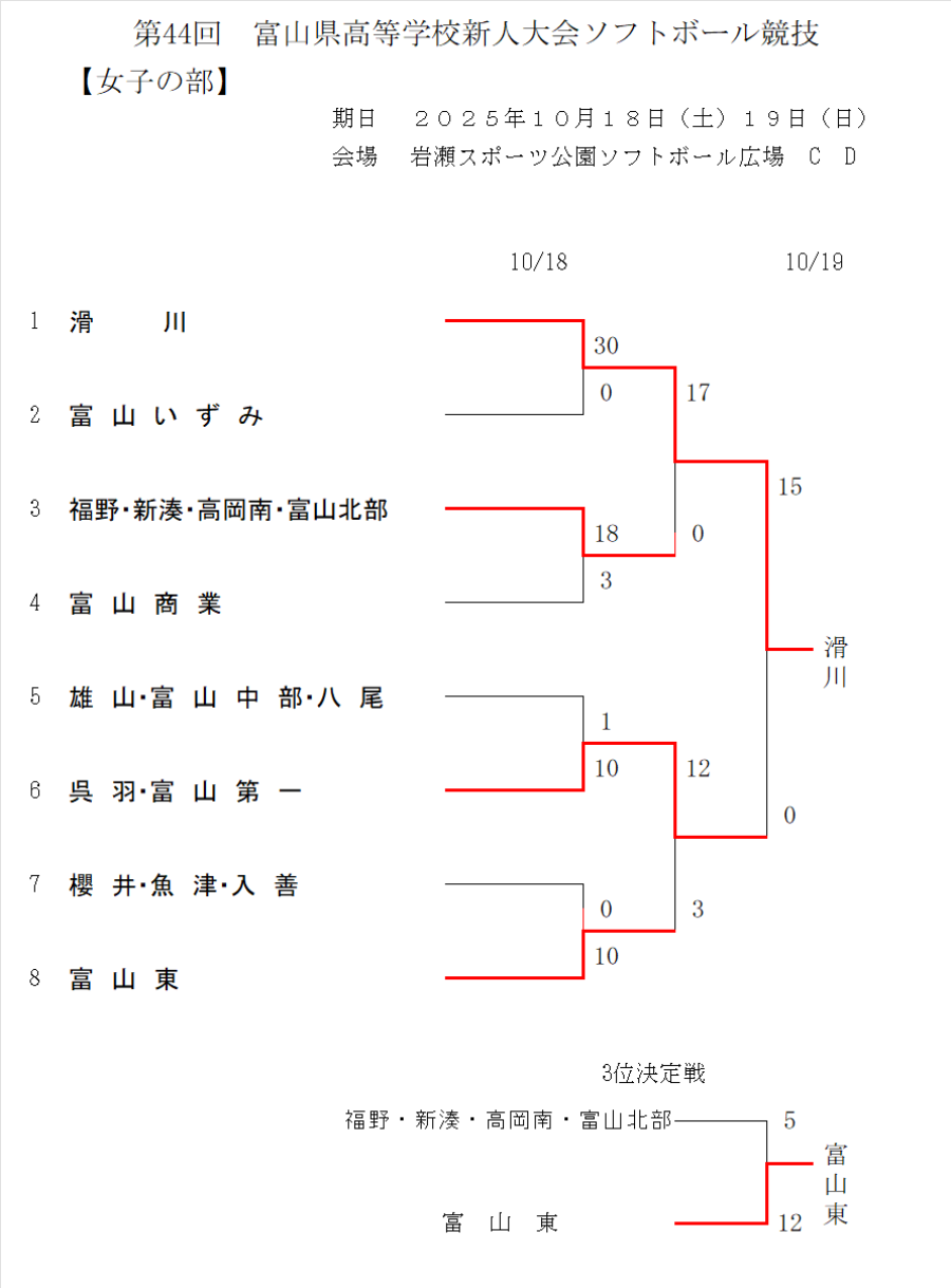 | 第三位 シード権獲得の南砺福野高校ナイン | 第三位の高岡南高校ナイン |