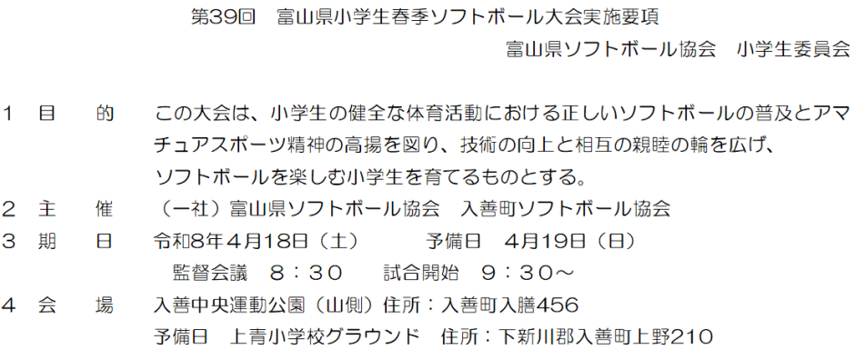 | 第39回富山県小学生春季ソフトボール大会 |