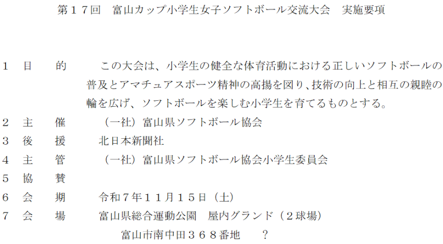 | 富山カップ小学生女子ソフトボール交流大会 |